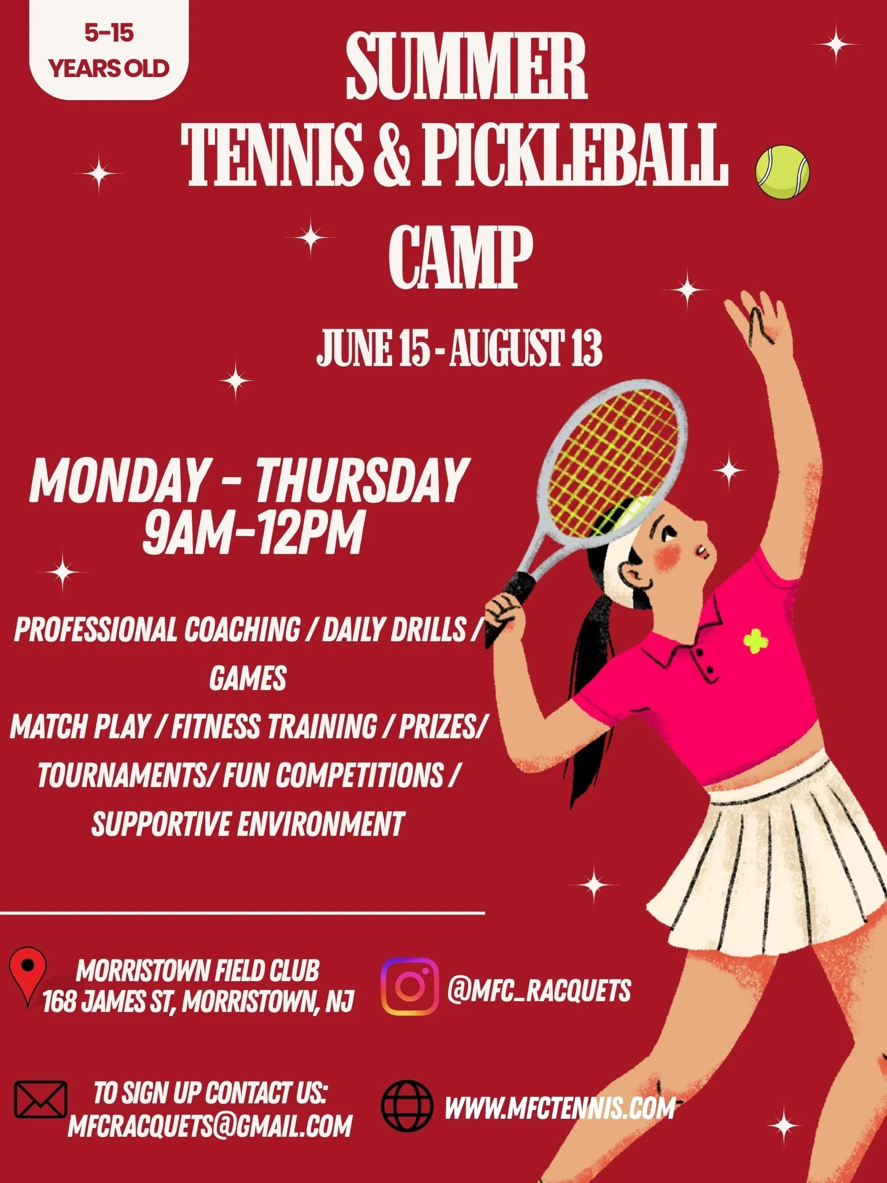 Our Junior Summer Camp blends tennis, pickleball, and fitness games in a supportive, confidence-building environment for ages 5-15.